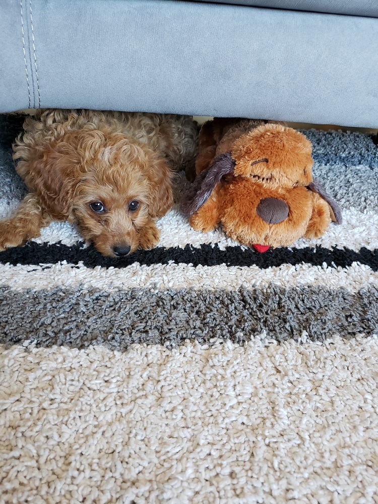 Our girl is now 5 1/2 months old and weighs 11.5 lbs. Toto is now toilet trained, trained in basic obedience, and some advanced tricks that I taught her mainly from Youtube. Now that socializing is allowed, we are working on meeting as many people and other dogs. She loves other dogs and people and is now learning to ignore them until permitted to greet them. My wife and I are working from home so we make a point of ensuring she is on her own for 1-4 hrs every day.